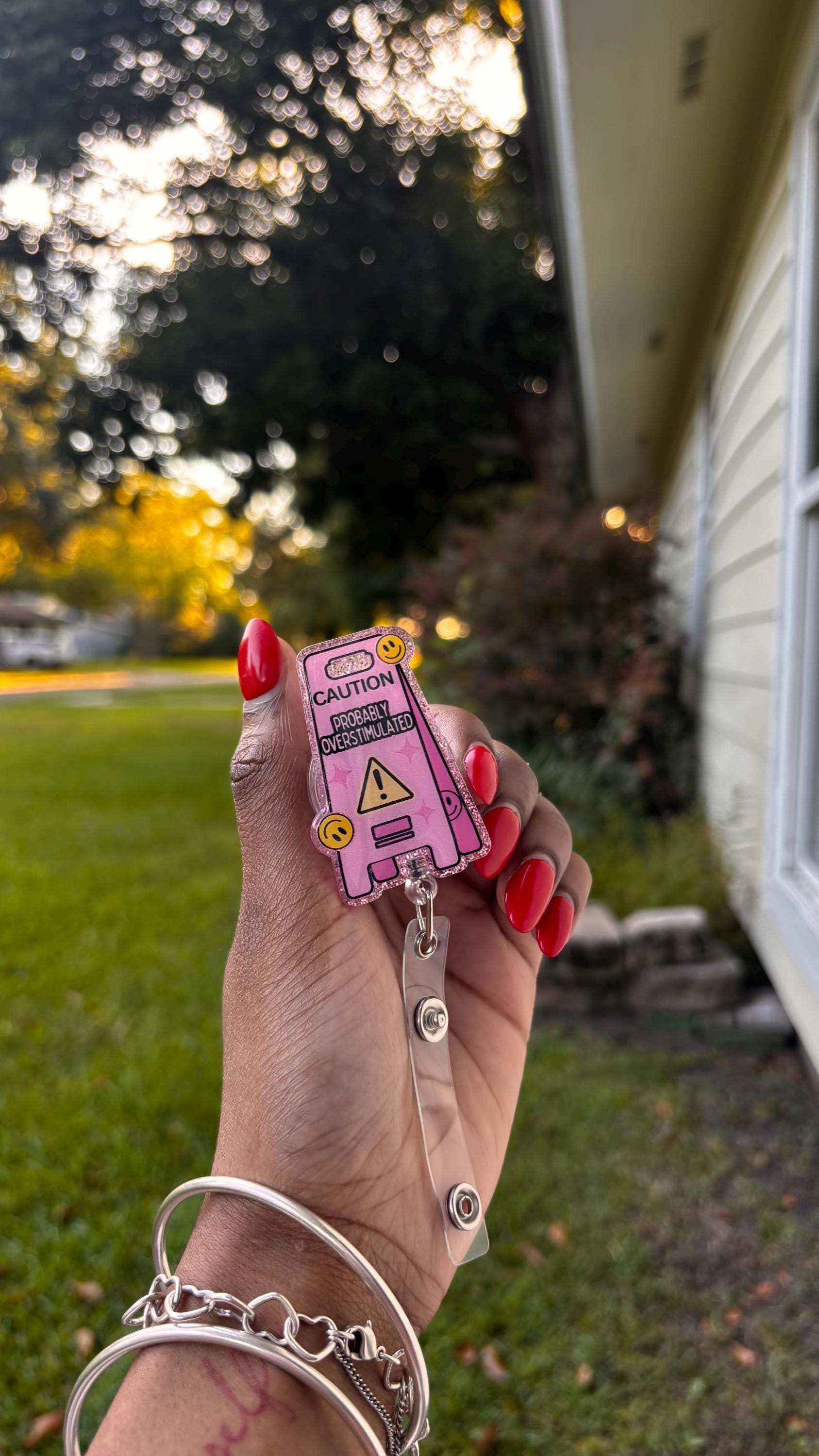 Make your coworkers smile (and maybe warn them at the same time 😅) with this quirky badge reel! Featuring the playful phrase “Caution: Probably Overstimulated”, it’s perfect for adding a touch of humor and personality to your workday.